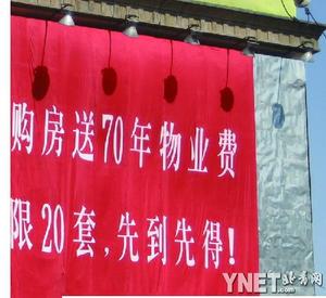 “终身免物业费”、“购房送70年物业费”,在今春一派楼市回暖的景象中,北京许多楼盘相继推出新的促销热卖举措。近日,京城多家房产网站上,都出现了部分楼盘购房全免物业费的消息,一时成为购房者和业内人士关注的话题。