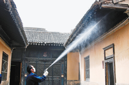昨日上午,防治人员先对虫害重点进行局部处理,向门框、房檐喷洒白蚁虫害防治剂。市白蚁防治所副所长刘方介绍,白蚁侵害的对象主要是房屋建筑、古建筑、仓储物资、家具衣物、档案书籍等含有纤维素的物质。近期,专家还将对郭家大院进行全面系统防护处理,并定期全面检查,彻底杜绝虫害蔓延。