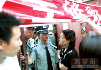 昨日,丰台区建委工作人员赶到现场协调此事。(耿小勇)