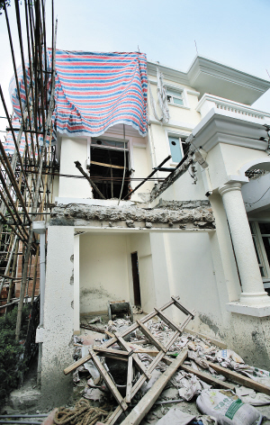 据一施工人员介绍,该别墅的改、扩建工程两个月前就开始了,估计还要2个月左右才能全部完工,而工程费用至少要几十万。“很多结构都改了,有的位置甚至是拆了重建,房屋面积至少扩大上百平方米。”至于大肆改动的理由,是因为“屋主说家里人多,有两个小孩,原来的房间不够住”。