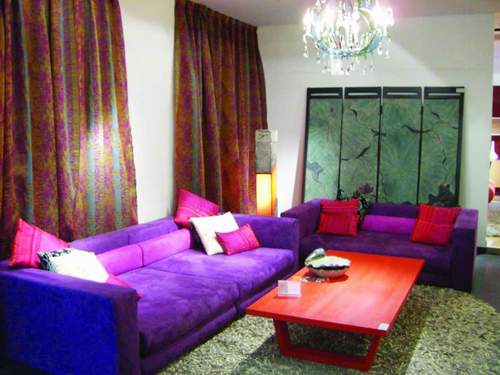 目前部落风格的家居多以明清风格为样板,感觉比较沉闷。如果尝试着用粉紫色来作为点缀,能更深层次的表现中式家具的内涵。清新的紫与古朴家具的大胆配合完全符合现代人的心境。白色在中式的风格中很少使用,由于沙发使用了时尚的紫色,搭配具有现代感的白色靠包,感觉十分融合。安静时来一曲《紫色花海》,沉静在紫色的情调中,独自陶醉。