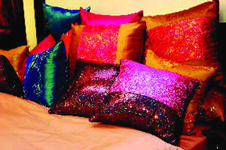 ▲一条艳丽轻柔的纱幔、几个色彩妩媚的泰丝靠垫,累了,慵懒地倚在泰式靠枕上舒松筋骨。泰丝的流光溢彩、细腻柔滑,在居室随意放置后漫不经心的点缀作用是成就东南亚风情最不可缺少的道具。