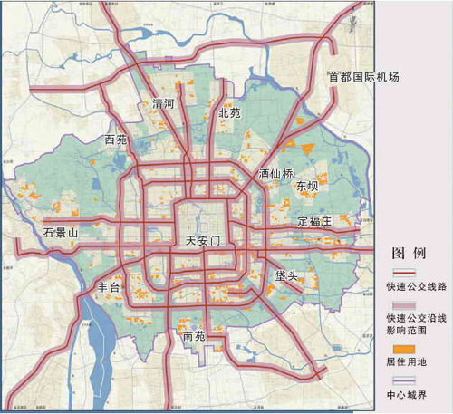 按照《北京住房建设规划(2006年-2010年)》,“十一五”期间,本市新建商品住房建设规模约9250万平方米,套数约90万套,将在轨道交通、大容量公共交通、主要公共交通走廊沿线集中成片安排以90平方米以下普通商品住房为主的居住区。