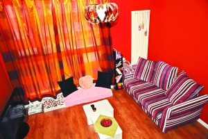 50多平米的房子,大红占据了大半空间,红得耀眼,却不刺眼,让人禁不住感叹主人用色大胆。