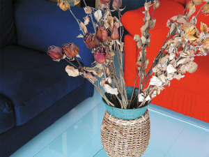 因为心爱,我对安置干花的容器十分挑剔,经年累月收藏了大大小小不下几十个瓶瓶罐罐,从铁皮到陶瓷,从木头到玻璃,从藤编到草结,应有尽有。