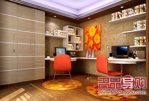 书房是家中文化气息最浓的地方,可以将自己的情趣充分融入到装饰中。书房作为工作、阅读、学习的空间,其设计以功能性为主。在其装修中必须考虑安静、采光充足、有利于集中注意力,为达到此效果可以使用色彩、照明、饰物等不同方式来营造。