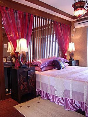 如梦似幻式。在洞房的四壁及天花板上,喷涂七彩墙饰涂料,以抽象、朦胧为基调,造成一种如梦似幻的神秘遐想效果,使新婚蜜月充满浪漫气息。
