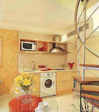 浅亮的色彩能够造成一种开阔感,使居室显得更为宽敞;鲜艳的色彩在强烈的光线下一般会显得更加生机勃发。暖色能补偿光线不足,因而可用来赋予朝北或者较阴冷的居室以欢快的情调。着重于功能性与舒适感的开放式厨房,整体布局都非常简洁精炼,只从基础结构中寻求细致的变化。