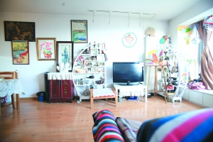 特制木床储物 房子小,能储物的空间少,史隽请人制作了双人木床,床底是几个大抽屉,可储衣、储物,非常实用。