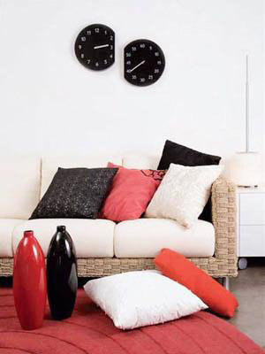 在色彩比例方面需要注意的是,虽然暖色可以温暖环境,但过度使用会造成“燥热”的心理。如果你希望营造出柔和舒适的环境,建议不大量使用强烈饱和度的暖色,而改用含有一定灰色成分的灰度暖色。大面极的灰色也会产生沉闷的感觉,无论如何都要给这个空间留出一些白色,好让眼睛可以“透透气”。