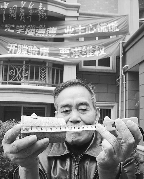 “结果出来就是没有一个洞是合格的,当我们拿着这个跟开发商说的时候,他们还说楼是合格的,这只不过是瑕疵而已。”徐建兴说。