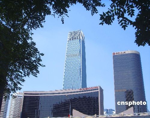 北京,图为国贸三期主塔,在蓝天的映衬下显得格外雄伟壮观,成为京城一座美丽的新地标。