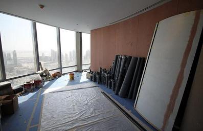 虽然外部结构已经基本完成,但内部装修还在继续进行中,到2010年1月,“迪拜塔”才能正式与世人见面。 (图片来源:国际在线)