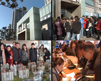 昨天开始,《经济半小时》栏目在新浪、腾讯、网易和MSN等网站上展开了百万网友房价问卷调查,您所在的城市房价是多少?您认为推动这一轮房价上涨的原因是什么?房价还会不会涨下去?截止今天下午,已经有38万名网友参加了我们的调查,也期待有更多的观众能积极参与,发表自己的看法。在展开这次网络问卷调查的同时,我们也对几个热点城市的房价进行了实地调查。今天就来看看上海,有人形容今年上海的楼市可谓一个季节换一道风景,春季是回暖,夏季是井喷,秋季是盘整。现在到了冬季,上海楼市又是一个什么样的情形?先来看看一个新楼盘开盘的现场。
