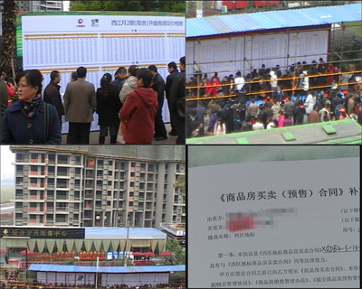 这是11月29日,位于成都市郊区的北湖印象楼盘,一个自称是新农村安置房、三年才能办产权证、不能按揭的项目,同样吸引了众多购房者,推出180套房源,提前排过号的已有164号。