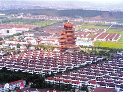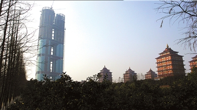 一座328米的高楼将挺立在华西村的土地上。目前,这座高度在中国排名第8,被称作“空中华西村”的摩天大楼正在紧张建设中,60层主楼已经封顶。