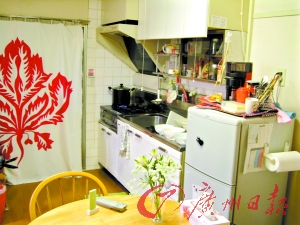 这是一栋六层楼的住房,不高,却非常庞大。从外面看,由一个超长的连廊连起,每层楼大概都至少有几十户住宅,就好像我们国内二十年前的单位宿舍楼。山口家面积只有三四十平方米,入门处是玄关,是一个下沉的空间,摆放着鞋柜和一些杂物。厨房和餐厅都是开放式的,和客厅由一个日式的推拉门相连。客厅非常小,卧室则与公共活动空间分离,是“榻榻米”。就在这个小小的蜗居里,洗澡房、洗面池和厕所都是分开的。早晨起来全家都赶时间的时候,三个空间各干各的实在是大派用场,可见日本人为蜗居设计煞费苦心。山口告诉我们,这套房子每月租金是62300日元,大概是他收入的三分之一,同样的房子,在东京则需90000~130000日元∕月。山口极为节俭,平时只坐一站公交车,然后走过一座小山回家,能省则省。