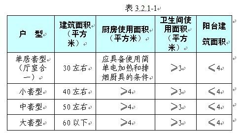 2.2.1 公共租赁住房户型设计面积标准如下表3.2.1-1