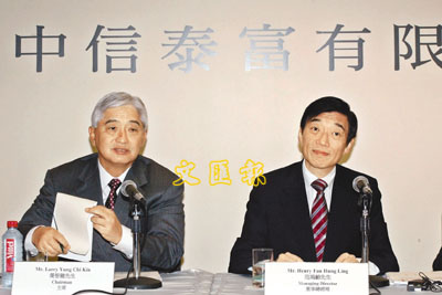 中信泰富主席荣智健表示,未来三年中信泰富将主要投资于内地,重点是房地产项目。中信泰富副董事总经理李松兴表示,现时该公司内地土地储备达330万平方米,而计及正在洽谈、并有很大机会取得的土地后,其土储则可达800万平方米。荣智健表示,位于海南万宁“神州半岛”的大型综合开发项目进展顺利,建筑面积约250万平方米的开发规划已获得政府批准,相关的基础建设工程已经展开。第一期包括四间高级酒店和配套工程的设计及商务谈判工作已全面展开,预计不久将可破土动工,高尔夫球场等设施的兴建也将随后展开。