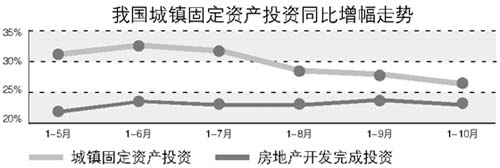 中新网11月17日电 《北京商报》记者16日从国家统计局获悉,今年1-10月份,全国城镇固定资产投资(FAI)70071亿元,比去年同期增长26.8%,这是自今年5月国家出台“国六条”等宏观调控政策以来,固定资产投资同比增幅的最低点。不过全国房地产投资热度依旧不减,仍然同比增幅达到24.1%。