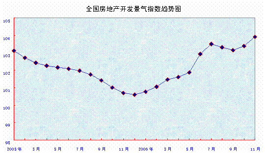 中新网12月15日电 据国家统计局网站消息,11月份,“国房景气指数”为103.92,比10月份上升0.52点,比去年同月上升3.23点。