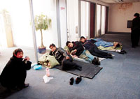 记者在该售楼处的二层看到一些工人已经搭起了地铺,据这些人告诉记者,他们是恒信建筑工程公司的,由于伯雅房地产开发公司欠他们工程款,他们从去年12月28日就住到了这儿,但到现在已经8天了,仍未找到该公司的人。