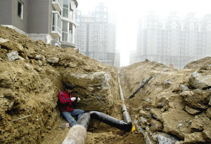 11日,《京华时报》记者来到在本岸楼盘,工人们正在施工。一名工人说,小区内的水电暖气等管线尚未铺设安装,“年底要入住是不可能的。”