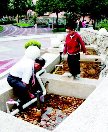 天河区一楼盘里面有个漂亮的人工瀑布,瀑布下有个鱼池,本来鱼池里养了一池金鱼, 由于鱼池的水较浅,贪玩的小朋友,经常去捞鱼,不几天小区的鱼池就被“洗劫一空”。