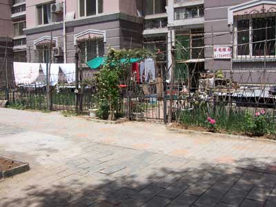 “住楼房也能像住四合院一样方便舒适。”不知道的人,也许会问这又是哪个楼盘做的售楼广告,其实这里说的正是天通苑。不少一楼住户都有两个门,后门是个用栅栏围成的院子,或种菜或养宠物。本报曾于今年4月报道了一些小区业主在小区内私搭乱建、非法占地的情况,近日,天通苑的业主又向记者反映了该小区业主“圈地”的情况。记者调查后发现,私自向外扩充自家“花园”在天通苑东二区很普遍,而物业则表示无执法权,很无奈。