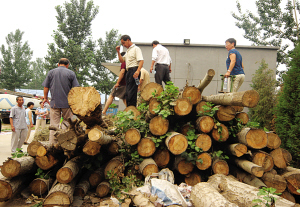 那么,园中林木的砍伐有没有合法手续?王福强辩解说,他并没有砍伐树木,他是在“移栽”。不过,在园中采访时,记者曾就此问题问起一名手持电锯站在树桩旁的工人。那名工人的回答是,那些树木被伐后,将切成木板,用到新建的房顶上去。