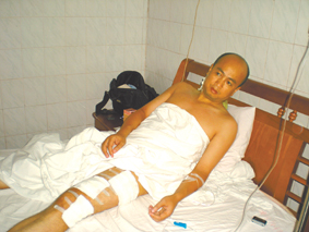 7月30日,广州市白云区畔山花园业主委员会主任李迎秋,在小区门口被三名不明身份的歹徒砍成重伤。事件经本报8月2日第五版报道后,引起了社会的强烈反响。8月5日上午,记者又来到李迎秋所住的广州一五七医院。
