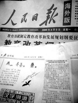 《人民日报》海外版广告部的工作人员告诉记者,海外版面向全世界80多个国家发行,城管部门刊登《强制拆除决定书送达公告》是第一次。(记者 王彬)