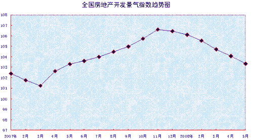 中新网6月18日电 据国家统计局网站消息,5月份,“国房景气指数”为103.34,比4月份回落0.73点,与去年同月基本持平。
