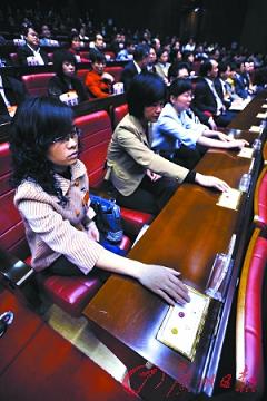 代表们昨日在省十一届人大二次会议闭幕大会上按表决器对会议各种决议进行表决。  记者邵权达、王燕摄