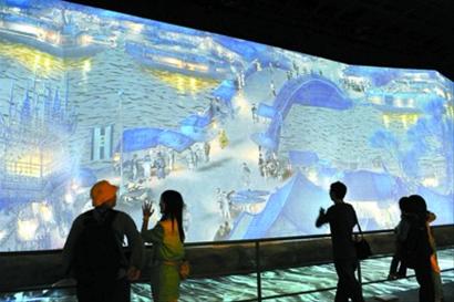 在其看来,这幅会“动”的清明上河图,表现了宋代汴京的繁华景象,当年的小康生活、和谐生活的理念也随之得到表现,每个人会走、会动、喝酒、聊天,这是利用现代技术把它做出来的。里面的水也是通过光效作用制成的,不是真正的水。