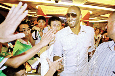 船舱里,穿着科比球衣的志愿者望眼欲穿。志愿者孙涛身上的科比8号球衣昭示着他铁杆球迷的身份。“我喜欢他11年了!”还没等记者发问,他便急不可耐地向记者介绍起自己身上地装备。除了身上那件05版球衣,他还从包里小心翼翼地掏出一件连标签还没来得及撕掉的24号球衣,“24代表了超越乔丹的愿望,23+1嘛。”这个时候,眼里还是满是即将见到偶像的兴奋和激动。