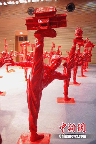 中新网上海8月17日电(康玉湛)一尊李小龙踢腿造型的巨型“CHINA功夫”雕塑17日一脚“踢”开了上海世博会佛山案例馆的大门。伴随着“CHINA功夫”雕塑方阵在此间的惊艳亮相,佛山案例馆正式拉开了在全球范围内遴选中国功夫形象代言人的序幕。