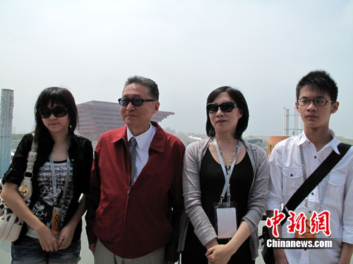 中新网8月28日电 台湾著名作家李敖今日携全家继续上海世博行。从上午九点半开始,李敖一行先后参观了西班牙馆、意大利馆和沙特馆,领略异国风情和文化。在沙特馆顶部的观景台,他以中国馆为背景与全家合影留念。