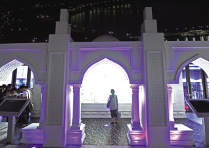 走进展馆,仿佛置身于首都巴库的老城区——内城。阿塞拜疆是人类最古老的定居地之一,巴库古城至今完整保留着修建于12世纪的汗王宫殿建筑,被称为“内城”,拥有迷宫般的狭窄巷道,景致如画。