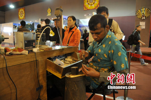 组图:世博园斯里兰卡馆工匠师现场制作工艺品(3)