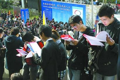 “本来是9点开始的,结果不到8点体育馆大门外已排起几米的长队,来的大多数是‘小白菜’。 ”昨天(3日)上午9点,当记者赶到本市首场世博工作者专场招聘会现场时,密密麻麻的人流让一旁的工作人员直感叹。在采访中发现,不管是招聘单位还是求职者,皆对活动抱有极大热情和期待。据统计,该场招聘会共吸引25000余名求职者,当场面试12000余人次,达成意向录用近3500人次。