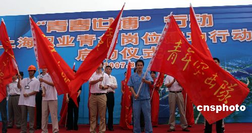 八月四日,在中国二○一○年上海世博会倒计时一千天即将到来之际,上海启动“青春世博”行动,鼓励上海的百万青年为世博会的各项筹备工作奉献力量。这预示着八月五日上海各界庆祝世博会倒计时一千天系列活动拉开序幕。中新社发 许晓青 摄