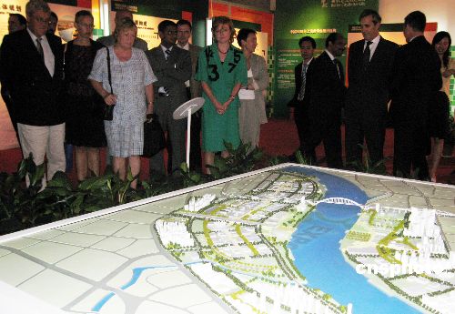 八月二十九日晚间,四十多个国家的驻上海领馆官员及常驻上海的各国际组织、商贸协会友好人士相聚上海城市规划展示馆,出席上海世博局主办的“中国二○一○年上海世博会沟通推介会”。这是上海世博会组织者首次举行如此大规模的国际公关活动,整体推介三年后将在此间上演的这一全球盛会。中新社发 许晓青 摄
