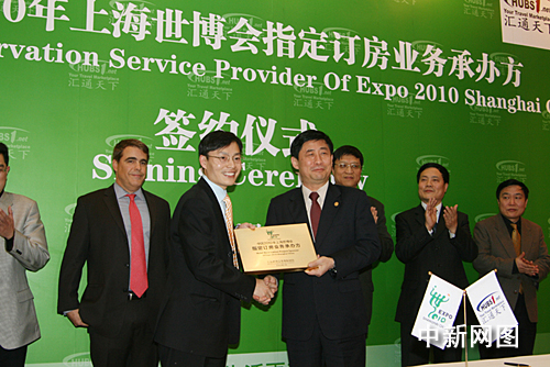 图为上海世博会事务协调局与汇通天下共同举行《中国2010年上海世博会订房服务项目赞助商》签约仪式。