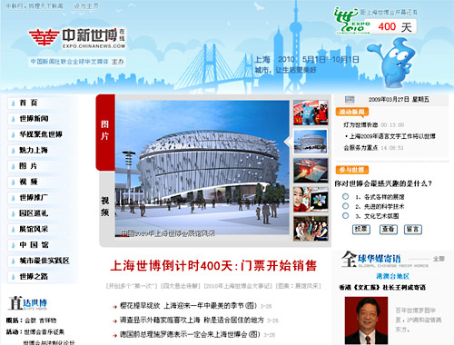 欣闻贵网将在世博会倒计时四百天之际(3月27日)开通“中新世博在线”,谨表示热烈祝贺!