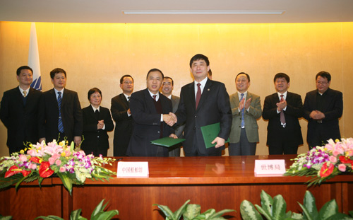 3月31日,中国船舶工业集团公司正式签署参展2010年上海世博会《参展合同》。上海市政府副秘书长、上海世博局局长洪浩,中国船舶馆馆长聂成根分别代表双方签署了参展合同。中国船舶馆在《参展合同》中同时确认参加网上世博会体验型展馆。上海世博局副局长丁浩等参加仪式。