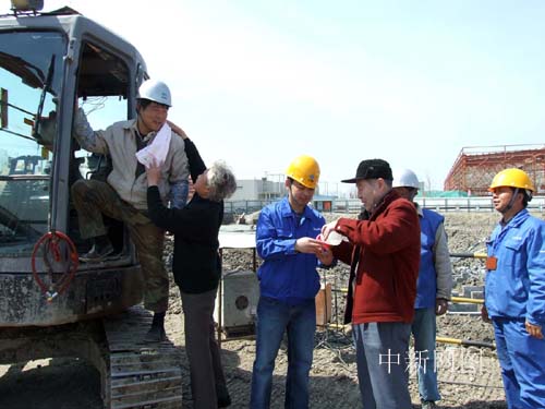 中新网上海4月3日电 (舒祖康)昨天上午,上海市浦东新区上钢社区的近80名离休老干部来到了附近的世博工地,在建设中的卢森堡馆前,向宝冶公司C1标工程世博建设者送上毛巾、茶杯和书籍等慰问品。这些年过古稀的“老革命”们在此寄语世博建设者:“我们来就是为你们打气、鼓劲。希望你们把世博场馆建设得更好。”
