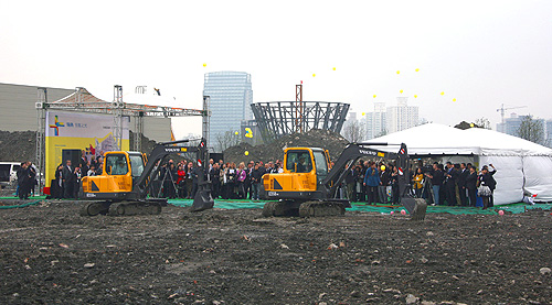 4月20日上午,一场极具创意的“挖掘机演出”在世博园区工地上演,上海世博会瑞典馆正式破土动工。瑞典外交部副部长古纳·韦斯特兰德、上海世博局副局长吴云飞、瑞典驻上海总领事姚汉森、上海世博会瑞典展区总代表任安莉等出席仪式。