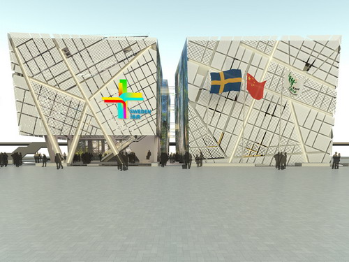 瑞典馆是首个奠基的北欧国家馆,占地3000平方米。建筑根据瑞典式可持续性理念,进行可循环利用设计。参观者可以在链接瑞典馆内部的十字形立体通道内穿梭往返,这个特别的通道从建筑的整体上象征着城市与乡村的和谐互动。
