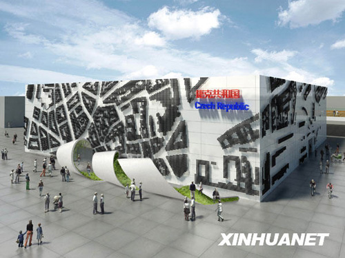捷克国家馆的主设计风格为都市风景,即展馆正面将夸张地表现布拉格街景。观展游客一进馆,就会看到绿色风景上衬托的城市景观。新华社记者 任珑 摄